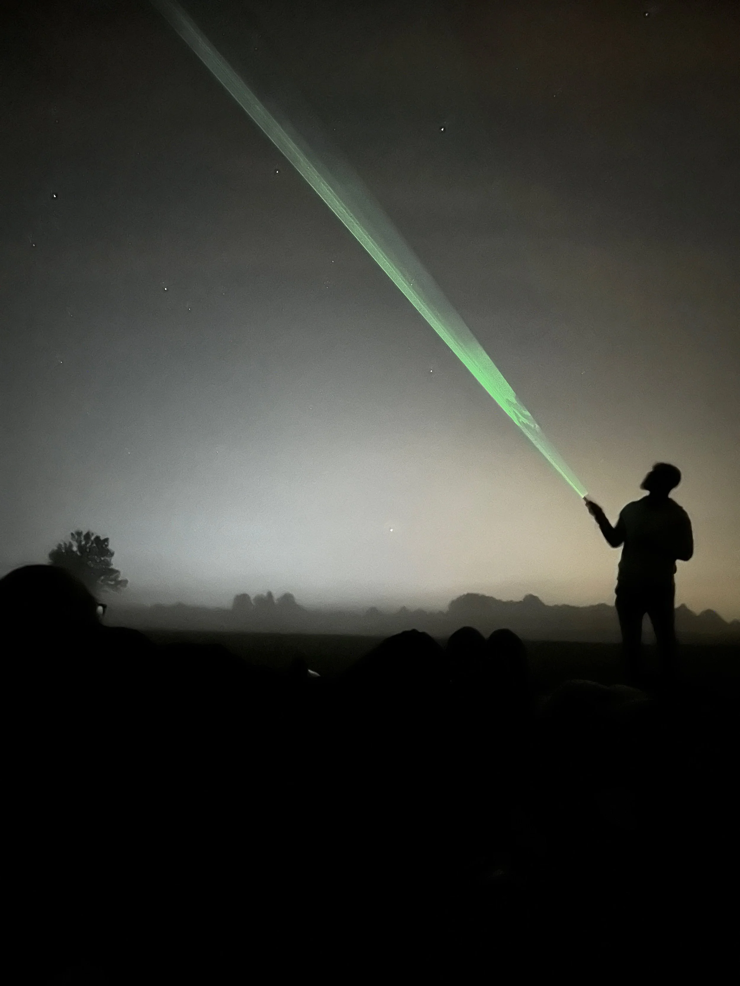 On Friday night, Dennis takes us outside and upward. With nothing but a laser pointer and a sky full of stars, he shares stories from ancient myth and modern science to illuminate what’s above us (and maybe within us too). Where is the North Star? How do galaxies work? Which constellations are visible tonight? Settle in for an evening of wonder, quiet questions, and the gentle thrill of remembering just how small (and special) we really are.